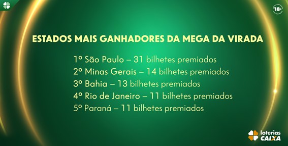Estados que mais venceram a Mega da Virada | Foto: Divulgação/Caixa